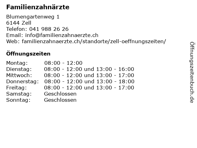 | Öffnungszeiten Familienzahnärzte in Zell anzeigen | |