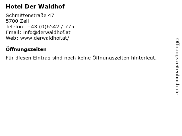 | Öffnungszeiten Hotel Der Waldhof in Zell anzeigen | |