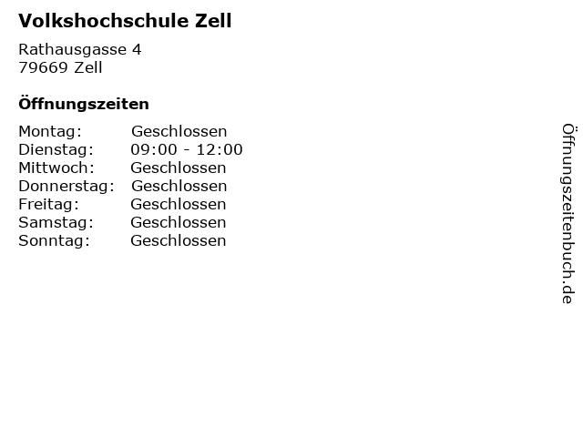 | Öffnungszeiten Volkshochschule Zell in Zell anzeigen | |
