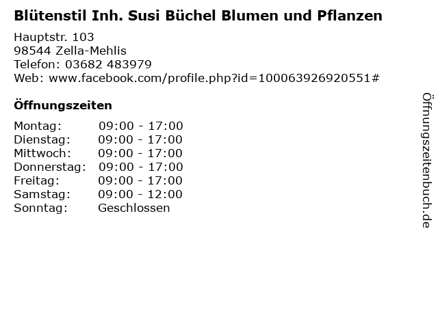3 Blumen Marr Gärtnerei und Blumenfachgeschäft (Entfernung: 1,81 km) Peter Haseney Straße 34, 98544 Zella-Mehlis 6 |