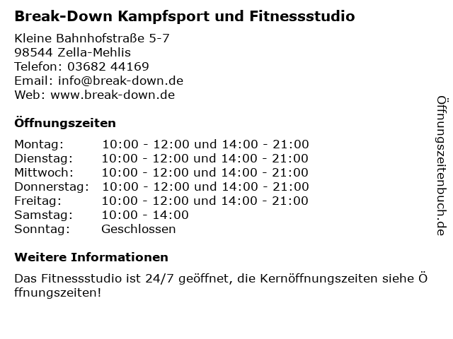 | Freitag | 10:00-12:00 und 14:00-21:00 |