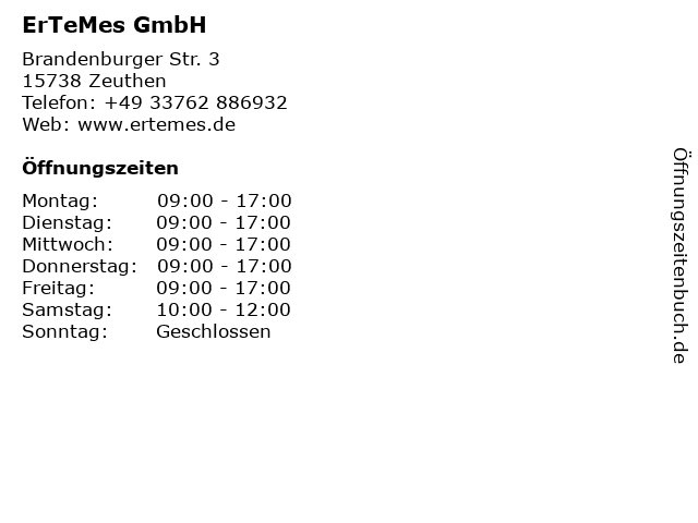 | Öffnungszeiten ErTeMes GmbH in Zeuthen anzeigen | |