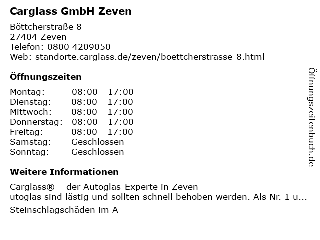 | Öffnungszeiten Carglass GmbH Zeven in Zeven anzeigen | |