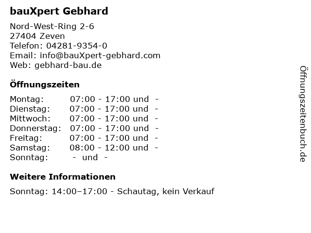 | Öffnungszeiten bauXpert Gebhard in Zeven anzeigen | |