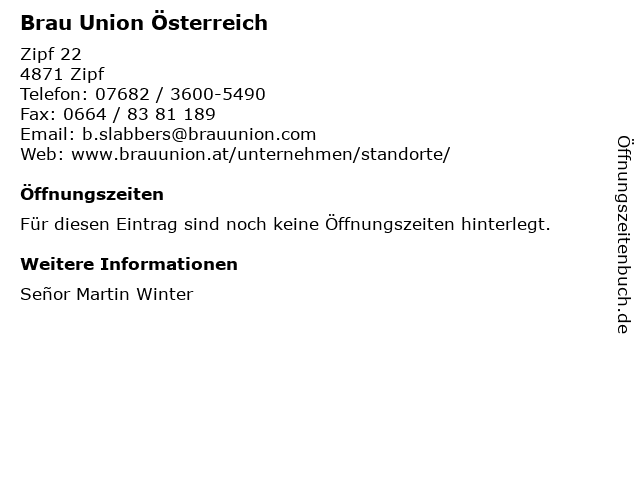 | Öffnungszeiten Brau Union Österreich in Zipf anzeigen | |