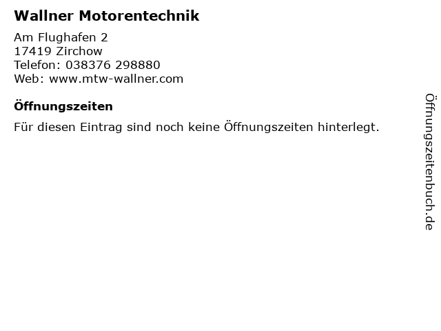 | Öffnungszeiten Wallner Motorentechnik in Zirchow anzeigen | |