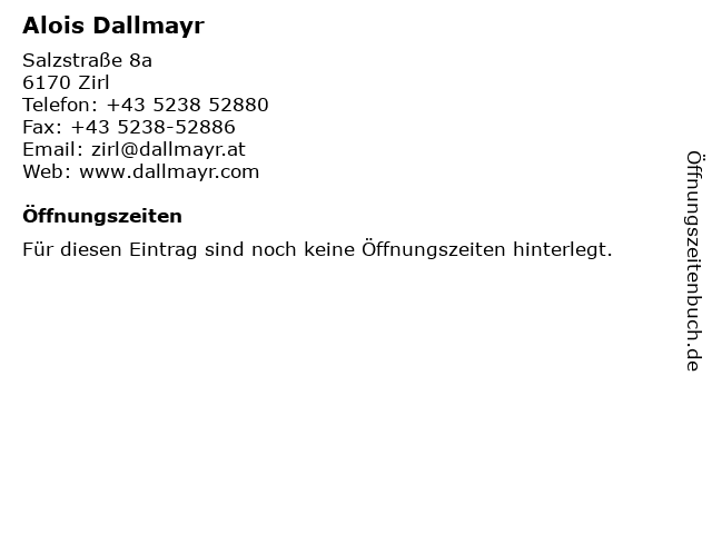 | Telefonnummer Alois Dallmayr in Zirl (+43 5238 52880) anrufen | |