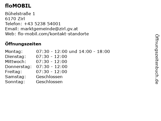| Öffnungszeiten floMOBIL in Zirl anzeigen | |