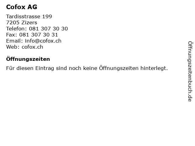 | Öffnungszeiten Cofox AG in Zizers anzeigen | |