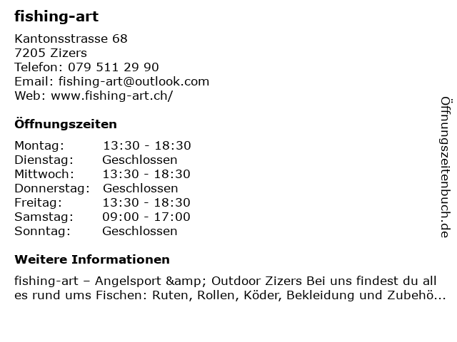| Öffnungszeiten fishing-art in Zizers anzeigen | |