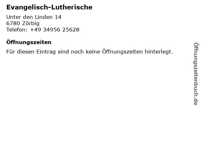 | Öffnungszeiten Evangelisch-Lutherische in Zörbig anzeigen | |