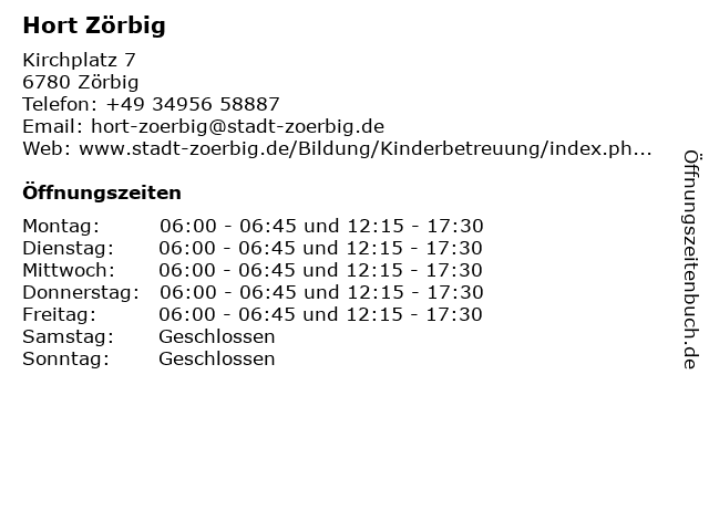 | Öffnungszeiten Hort Zörbig in Zörbig anzeigen | |