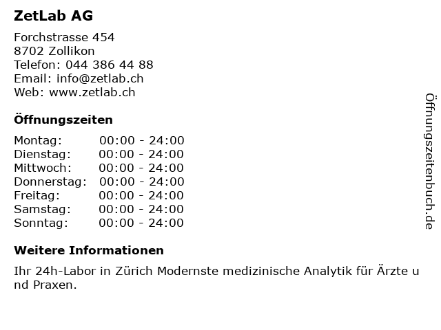 | Öffnungszeiten ZetLab AG in Zollikon anzeigen | |