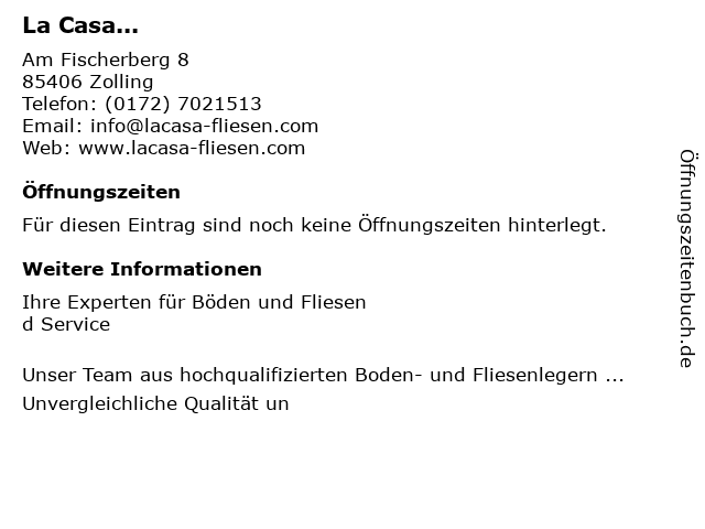 | Öffnungszeiten La Casa... in Zolling anzeigen | |