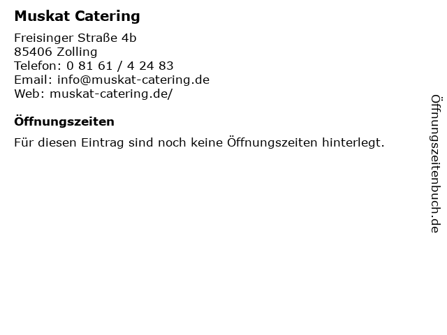 | Öffnungszeiten Muskat Catering in Zolling anzeigen | |