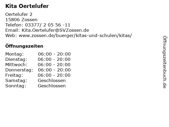 | Öffnungszeiten Kita Oertelufer in Zossen anzeigen | |