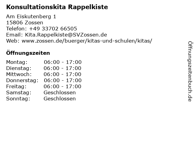 2 Kneipp Kindertagesstätte Villa Rappelkiste (Entfernung: 19,46 km) Birkenallee 8 /9, 15711 Königs Wusterhausen 4 Humanistische Kindertagesstätte Rappelkiste (Entfernung: 31,94 km) Alfred- Randt- Straße 15-17, 12559 Berlin 6  |