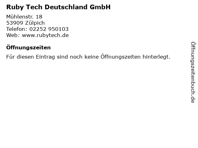 | Öffnungszeiten Ruby Tech Deutschland GmbH in Zülpich anzeigen | |