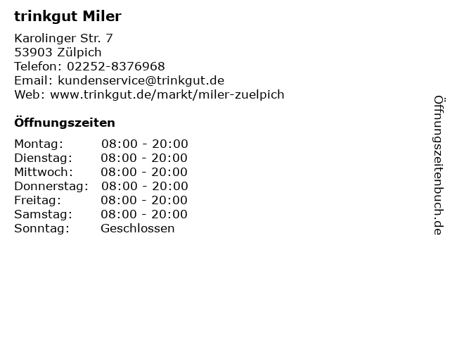 | Öffnungszeiten trinkgut Miler in Zülpich anzeigen | |