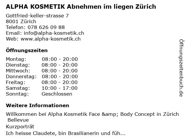 Branchen & Suchbegriffe zu ALPHA KOSMETIK Abnehmen im liegen Zürich:abnehmen, alpha, haarentfernung, haarentfernung: waxing, kosmetik, kosmetikgeschäft, kosmetische dermatologie, liegen, massagetherapie, naturheilkunde, zürich |