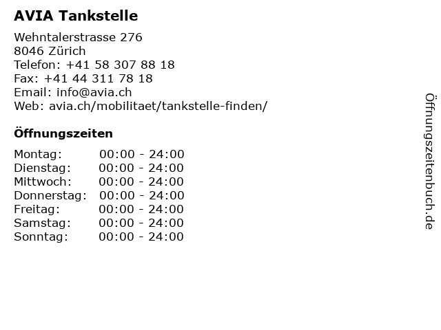 | Öffnungszeiten AVIA Tankstelle in Zürich anzeigen | |