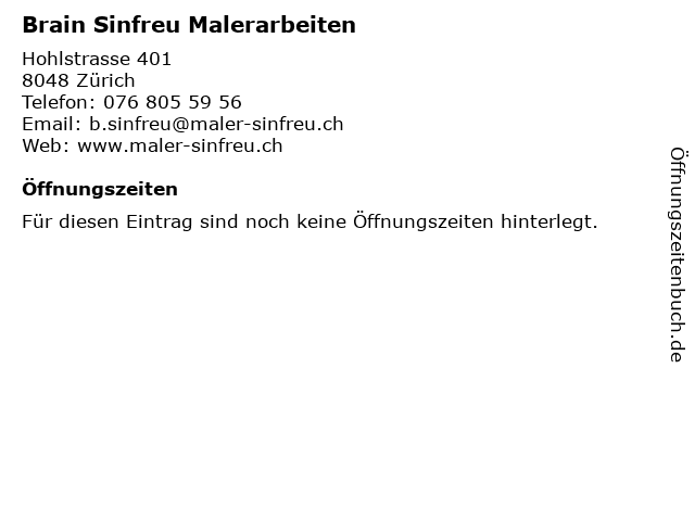 | Öffnungszeiten Brain Sinfreu Malerarbeiten in Zürich anzeigen | |
