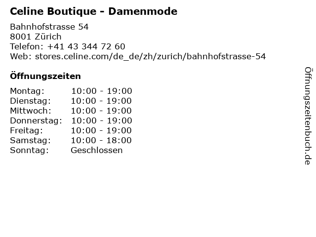 | Öffnungszeiten Celine Boutique - Damenmode in Zürich anzeigen | |