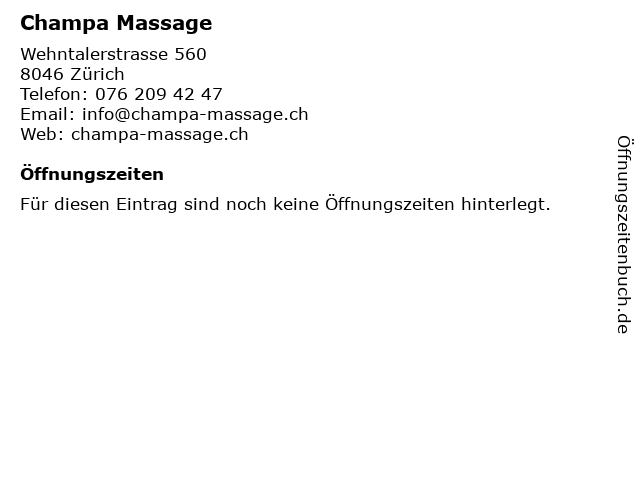 | Öffnungszeiten Champa Massage in Zürich anzeigen | |