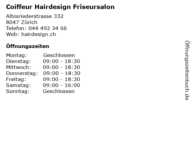 5 Hair Extensionscenter & Damen u. Herren Coiffeur (Entfernung: 1,54 km) Bachmattstrasse 37, 8048 Zürich 6 |