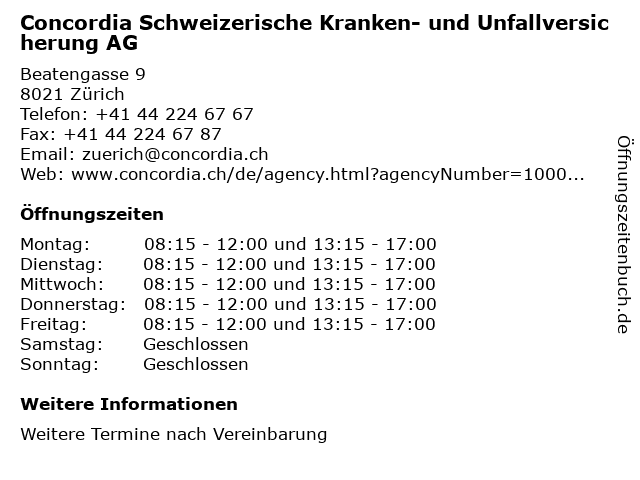 Branchen & Suchbegriffe zu Concordia Schweizerische Kranken- und Unfallversicherung AG:concordia, finanzen, kranken, krankenversicherung, kv, schweizerische, sicherheit, sparen, unfallversicherung, vermögen, versicherung, versicherungen, vorsorge |