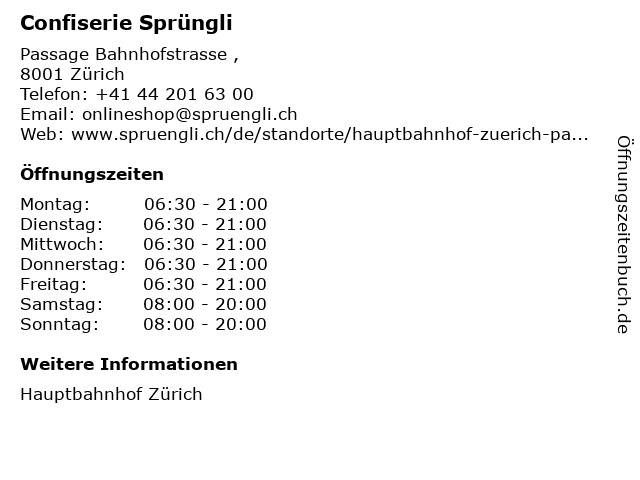 | Öffnungszeiten Confiserie Sprüngli in Zürich anzeigen | |