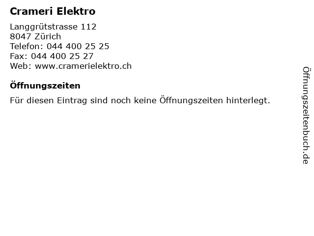 | Öffnungszeiten Crameri Elektro in Zürich anzeigen | |