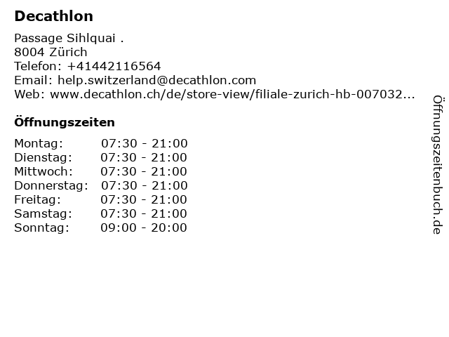 | Öffnungszeiten Decathlon in Zürich anzeigen | |