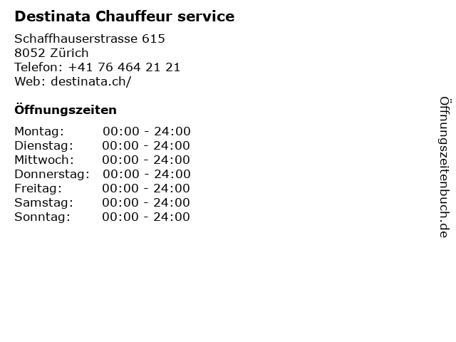 | Öffnungszeiten Destinata Chauffeur service in Zürich anzeigen | |