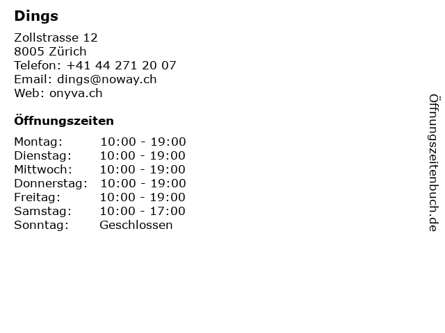 | Öffnungszeiten Dings in Zürich anzeigen | |