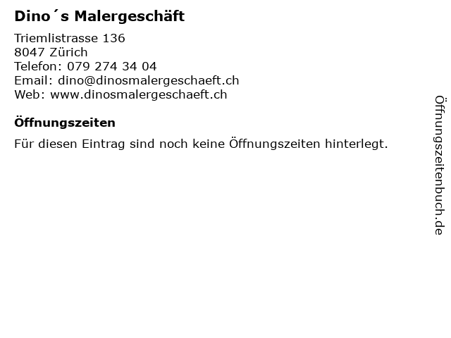 | Öffnungszeiten Dino´s Malergeschäft in Zürich anzeigen | |