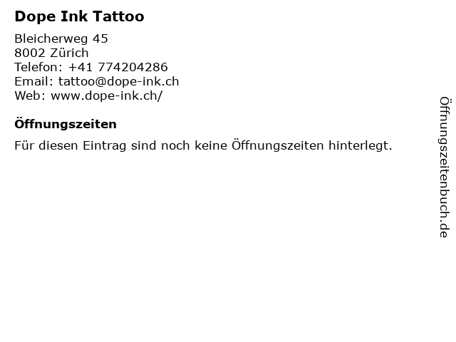 | Öffnungszeiten Dope Ink Tattoo in Zürich anzeigen | |