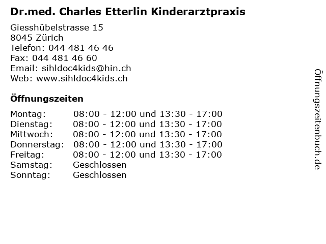 Branchen & Suchbegriffe zu Dr.med. Charles Etterlin Kinderarztpraxis:charles, dr., dr.med., etterlin, facharzt, fmh, jugend, jugendmedizin, kinder, kinderarztpraxis, med., spezialist, sprechstunde, sprechzeiten, wundversorgung |