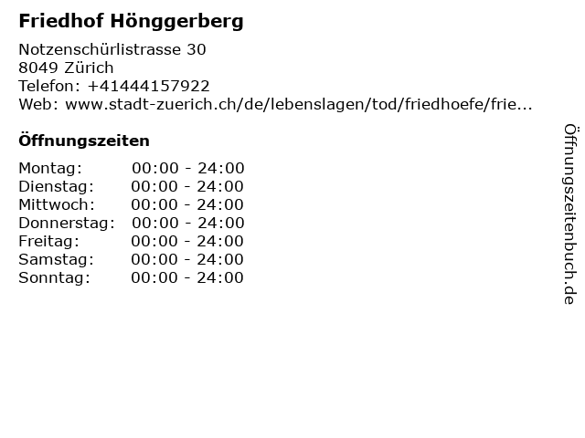 | Öffnungszeiten Friedhof Hönggerberg in Zürich anzeigen | |