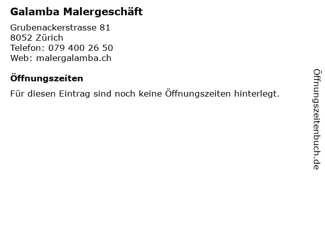 | Öffnungszeiten Galamba Malergeschäft in Zürich anzeigen | |