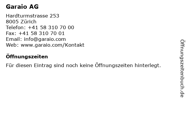 | Öffnungszeiten Garaio AG in Zürich anzeigen | |