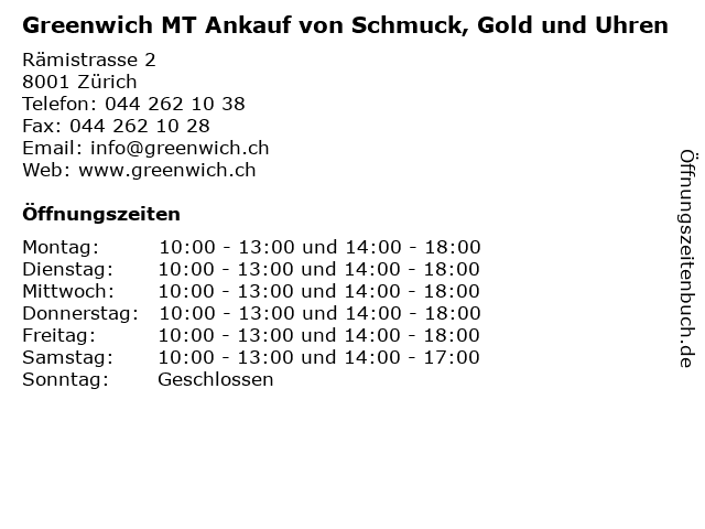 | Freitag | 10:00-13:00 und 14:00-18:00 |