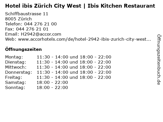 4 Novotel Zürich City West | Restaurant Gourmetbar (Entfernung: 0,02 km) Schiffbaustrasse 13, 8005 Zürich 5 Novotel Zürich City West | Gourmet-Bar by Novotel (Entfernung: 0,02 km) Schiffbaustrasse 13, 8005 Zürich 6 |