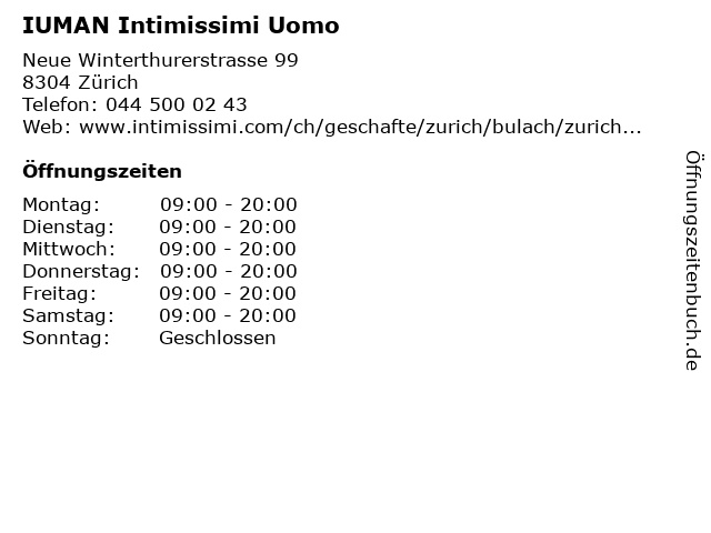 | Öffnungszeiten IUMAN Intimissimi Uomo in Zürich anzeigen | |