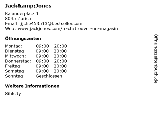 | Öffnungszeiten Jack&Jones in Zürich anzeigen | |
