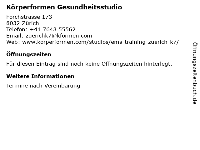 Öffnungszeiten Körperformen Gesundheitsstudio in Zürich anzeigen