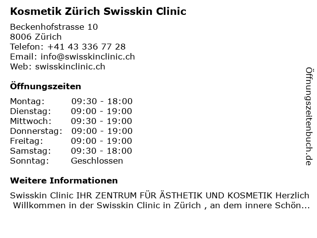 6 clinic kern – Dr. med. Hans Peter Kern - Zentrum für Ästhetik (Entfernung: 2,26 km) Dufourstrasse 31, 8008 Zürich |