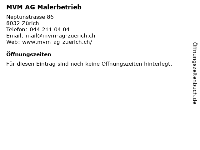 | Öffnungszeiten MVM AG Malerbetrieb in Zürich anzeigen | |