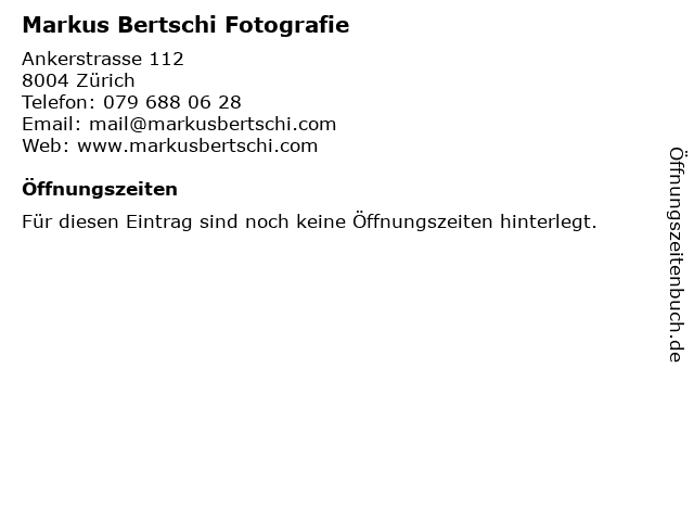 | Öffnungszeiten Markus Bertschi Fotografie in Zürich anzeigen | |