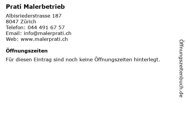 | Öffnungszeiten Prati Malerbetrieb in Zürich anzeigen | |